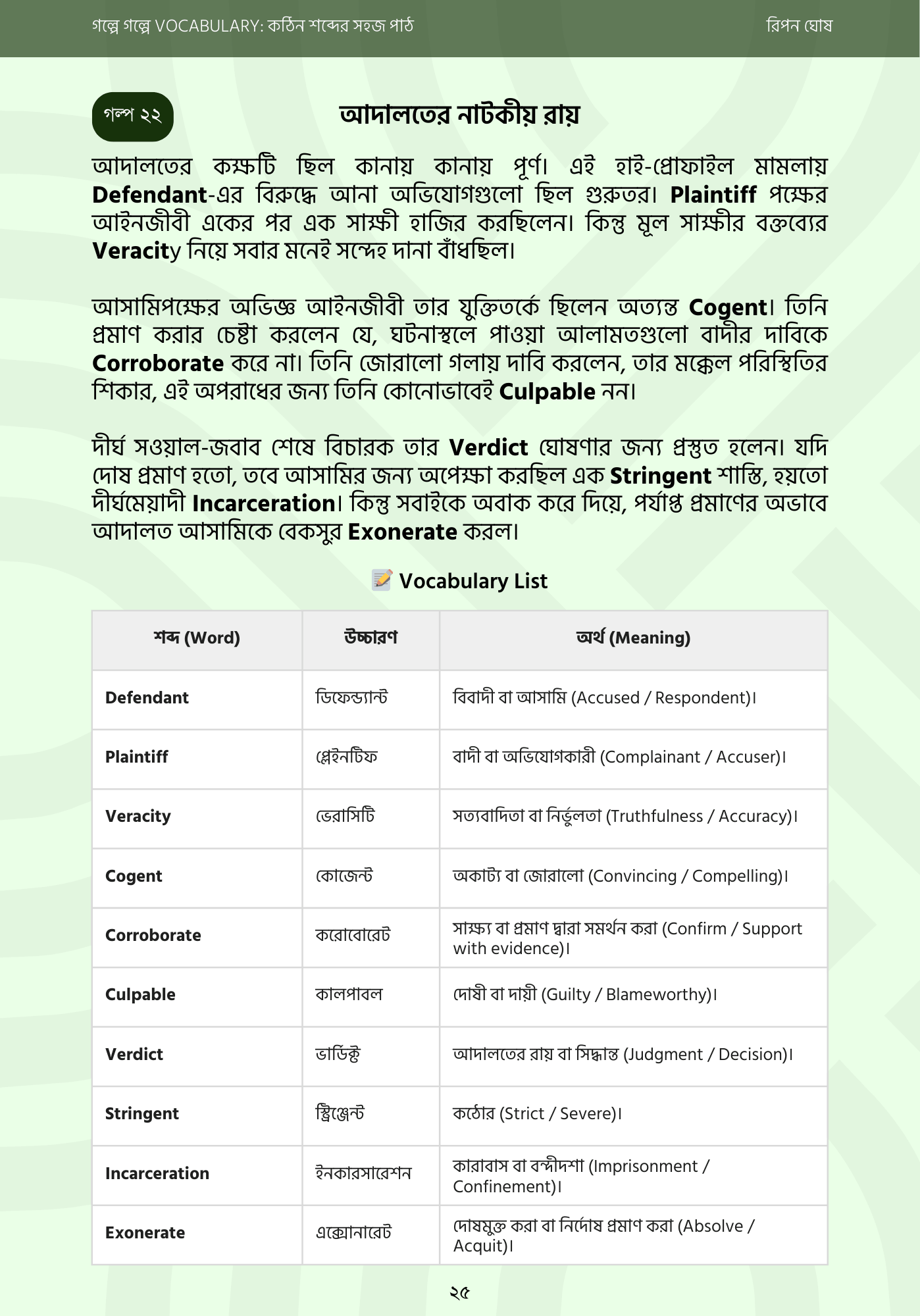 এটি কোনো বিদেশি বইয়ের কপি-পেস্ট নয়। বইয়ের প্রতিটি গল্প শতভাগ মৌলিক এবং আমার নিজের লেখা। আমাদের চেনা দেশীয় প্রেক্ষাপটে লেখা এই গল্পগুলো আপনাকে মুখস্থবিদ্যার একঘেয়েমি ছাড়াই শব্দ মনে রাখতে সাহায্য করবে।